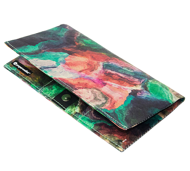 paperwallets are crafted from Tyvek®, a durable, lightweight, waterproof material designed to match your active lifestyle. This synthetic material is constructed from high-density, recyclable polyethylene fibers.