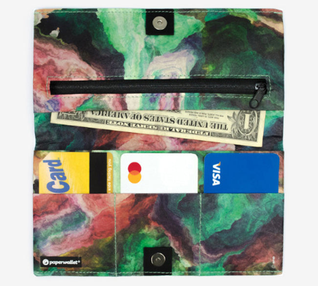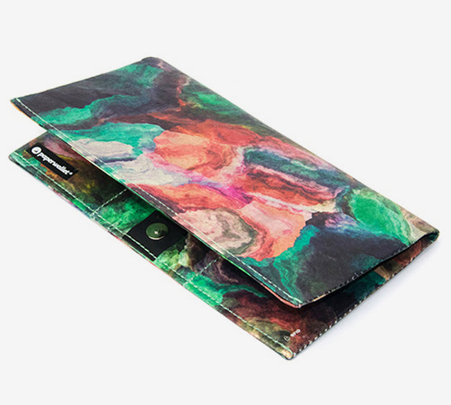 paperwallets are crafted from Tyvek®, a durable, lightweight, waterproof material designed to match your active lifestyle. This synthetic material is constructed from high-density, recyclable polyethylene fibers.