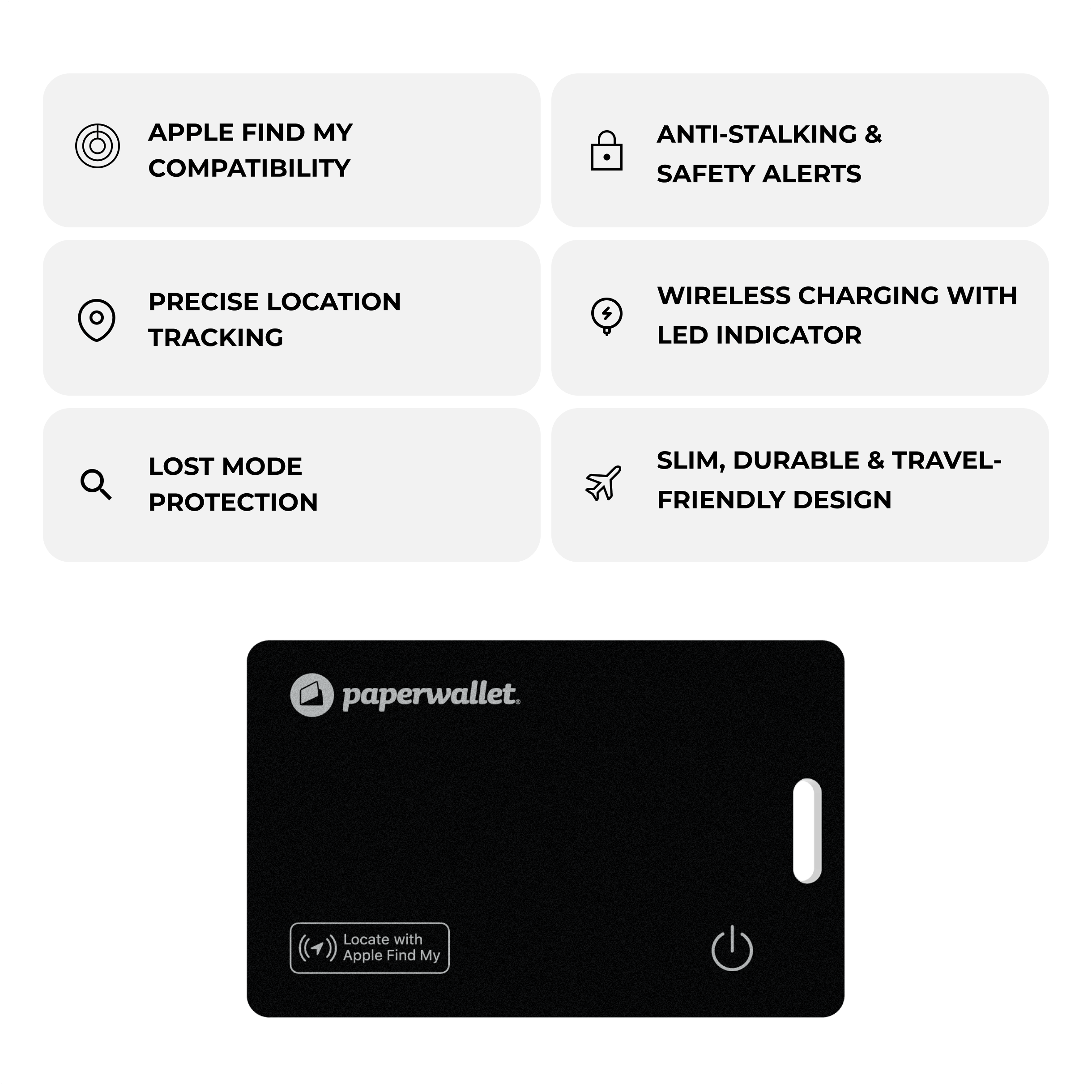 This certification guarantees seamless integration within the Apple ecosystem, providing you with reliable tracking technology. Trusted by Apple. Designed by Paperwallet.