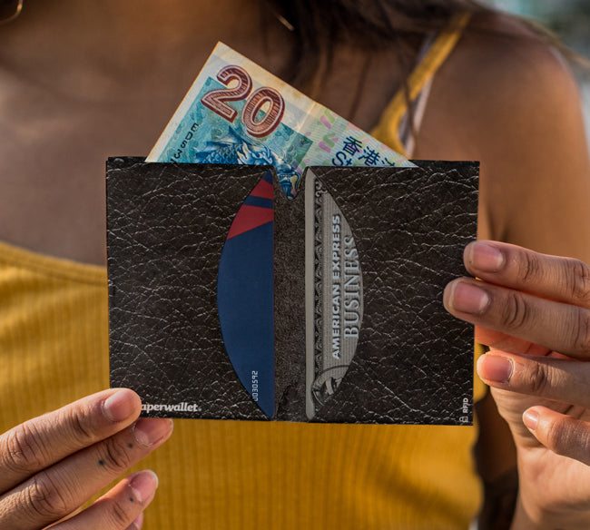 paperwallets are crafted from Tyvek®, a durable, lightweight, waterproof material designed to match your active lifestyle. This synthetic material is constructed from high-density, recyclable polyethylene fibers.