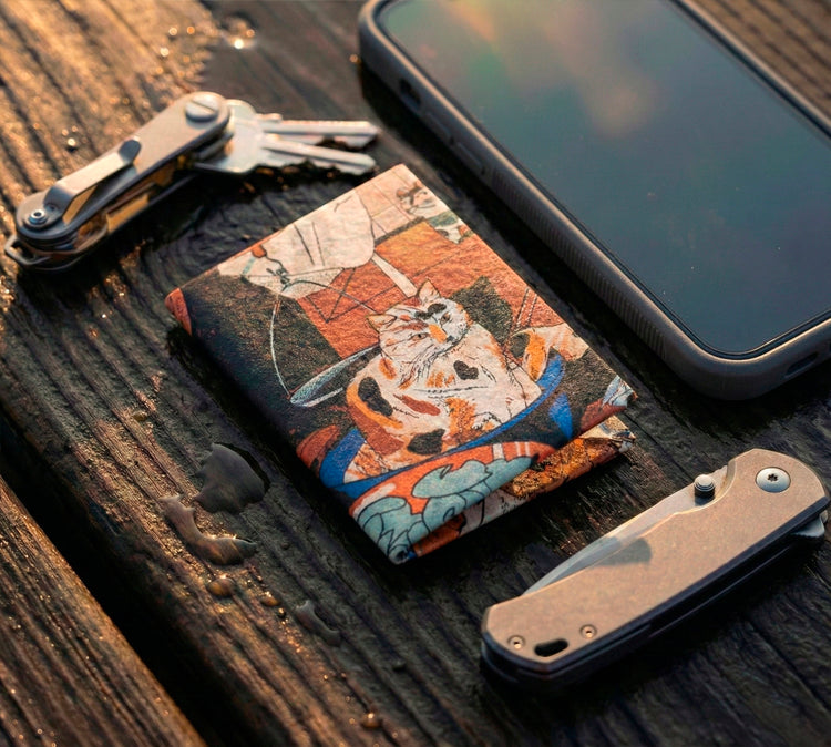 Our Micro Wallet is ultra-slim, durable, waterproof, and made from a single piece of Tyvek®. It holds up to 8 cards and cash, blocks RFID, and folds to the size of a card. Choose from limited-edition artist designs that match your style.