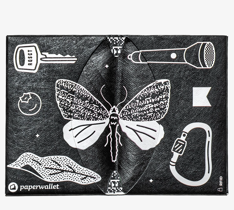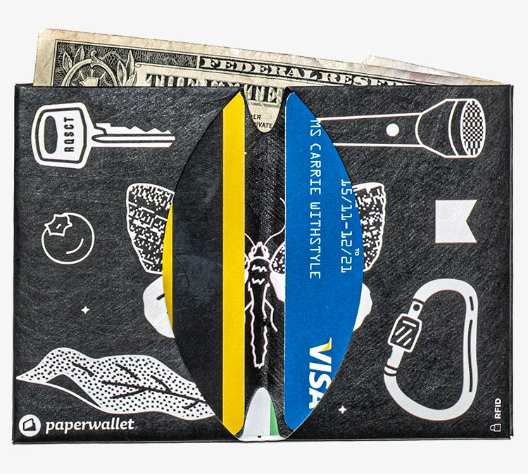 paperwallets are crafted from Tyvek®, a durable, lightweight, waterproof material designed to match your active lifestyle. This synthetic material is constructed from high-density, recyclable polyethylene fibers.