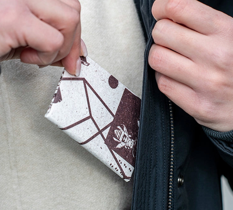 paperwallets are crafted from Tyvek®, a durable, lightweight, waterproof material designed to match your active lifestyle. This synthetic material is constructed from high-density, recyclable polyethylene fibers.