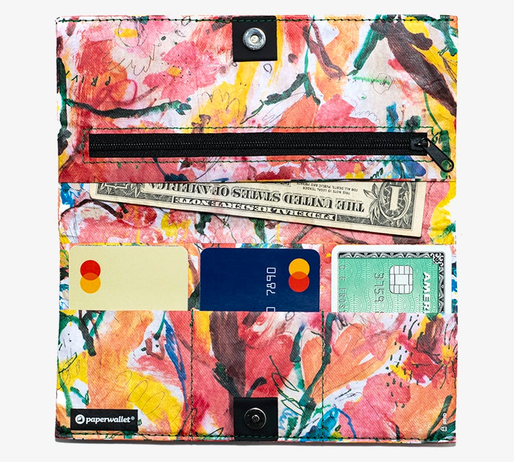 paperwallets are crafted from Tyvek®, a durable, lightweight, waterproof material designed to match your active lifestyle. This synthetic material is constructed from high-density, recyclable polyethylene fibers.
