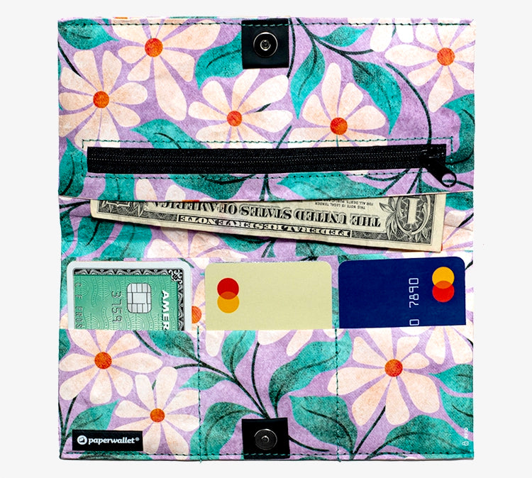 paperwallets are crafted from Tyvek®, a durable, lightweight, waterproof material designed to match your active lifestyle. This synthetic material is constructed from high-density, recyclable polyethylene fibers.