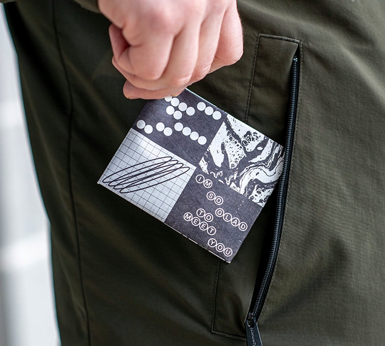 This slim wallet is Tyvek: 3mm thin, holds 12-16 cards and cash, waterproof, tear-resistant, and RFID-blocking. A Yehor Bread design that's instantly recognizable and impossible to mistake for anyone else's work.