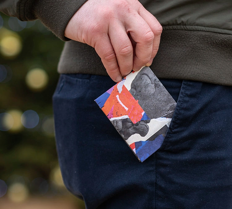 The Slim Wallet, made from durable Tyvek®, organizes your life with a sleek design. Waterproof and tear-proof, it comfortably holds 12-16 cards and cash. Unique artist-designed paperwallets add individuality.