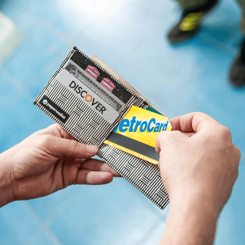 paperwallets are crafted from Tyvek®, a durable, lightweight, waterproof material designed to match your active lifestyle. This synthetic material is constructed from high-density, recyclable polyethylene fibers.