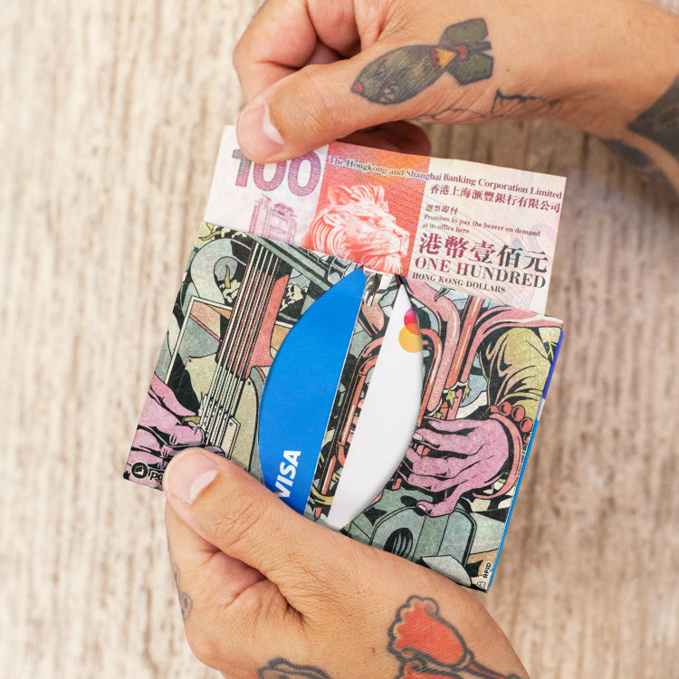 Our Micro Wallet is ultra-slim, durable, waterproof, and made from a single piece of Tyvek®. It holds up to 8 cards and cash, blocks RFID, and folds to the size of a card. Choose from limited-edition artist designs that match your style.