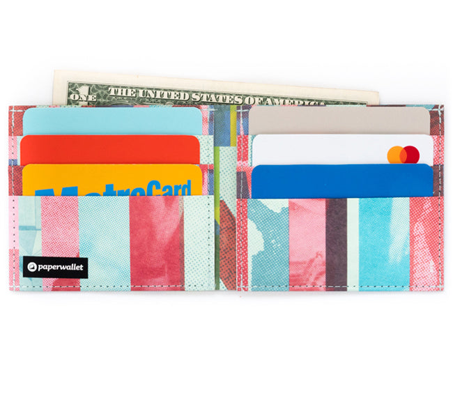 paperwallets are crafted from Tyvek®, a durable, lightweight, waterproof material designed to match your active lifestyle. This synthetic material is constructed from high-density, recyclable polyethylene fibers.
