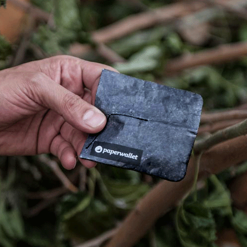 paperwallets are crafted from Tyvek®, a durable, lightweight, waterproof material designed to match your active lifestyle. This synthetic material is constructed from high-density, recyclable polyethylene fibers.