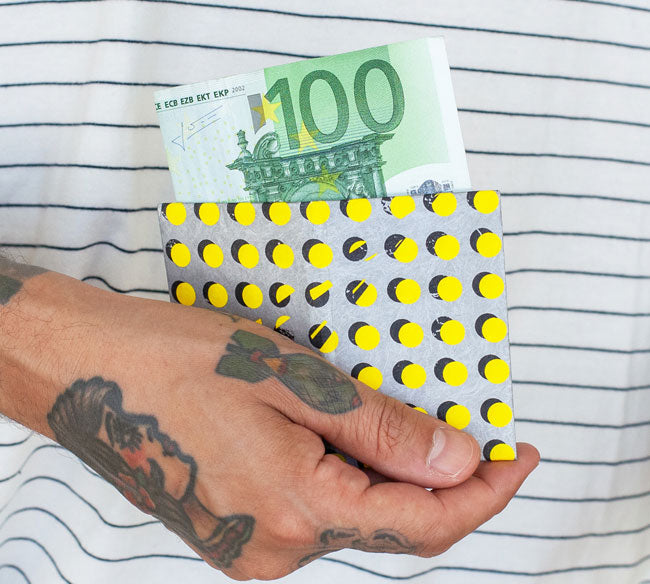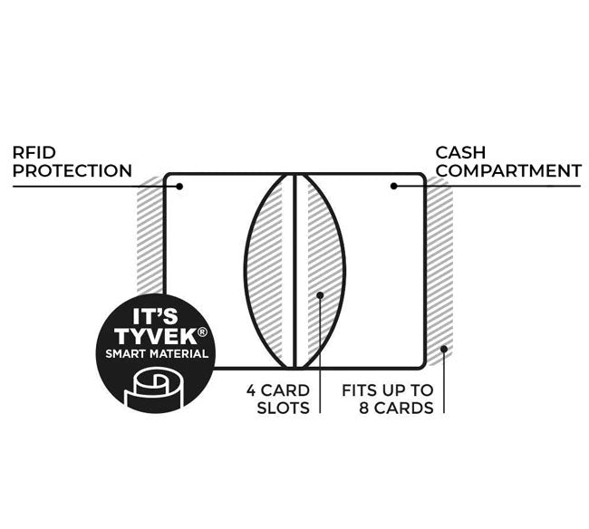 Our Micro Wallet is ultra-slim, durable, waterproof, and made from a single piece of Tyvek®. It holds up to 8 cards and cash, blocks RFID, and folds to the size of a card. Choose from limited-edition artist designs that match your style.
