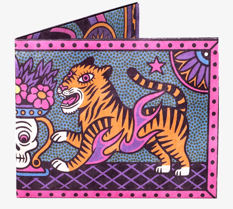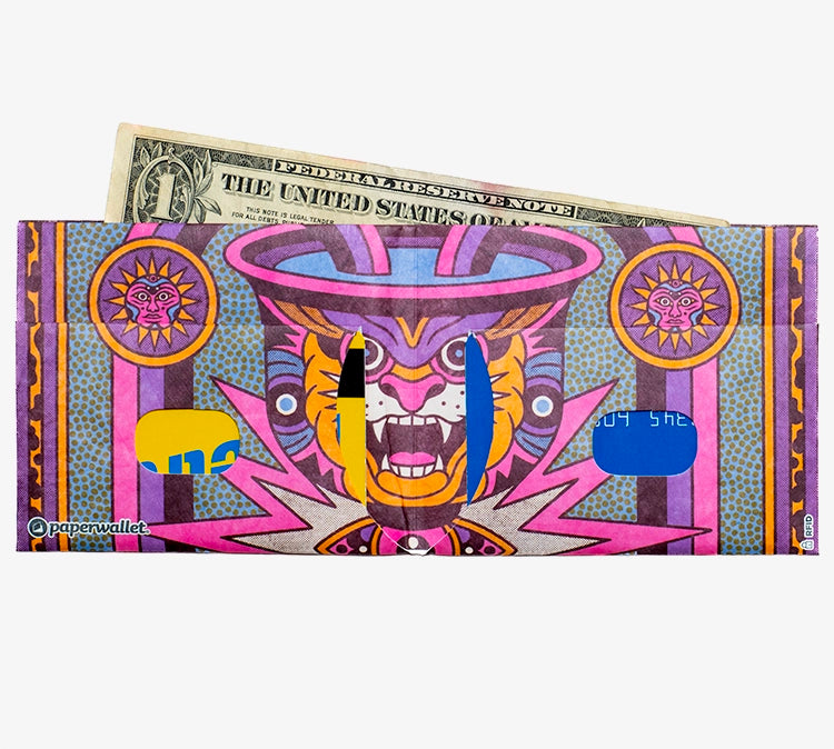 The Slim Wallet, made from durable Tyvek®, organizes your life with a sleek design. Waterproof and tear-proof, it comfortably holds 12-16 cards and cash. Unique artist-designed paperwallets add individuality.
