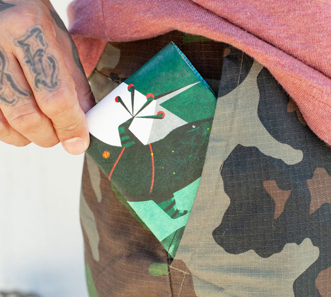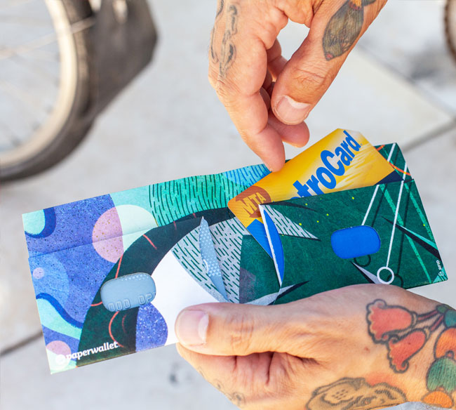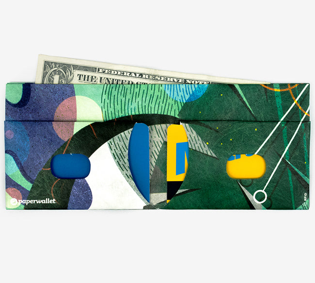 The Slim Wallet, made from durable Tyvek®, organizes your life with a sleek design. Waterproof and tear-proof, it comfortably holds 12-16 cards and cash. Unique artist-designed paperwallets add individuality.