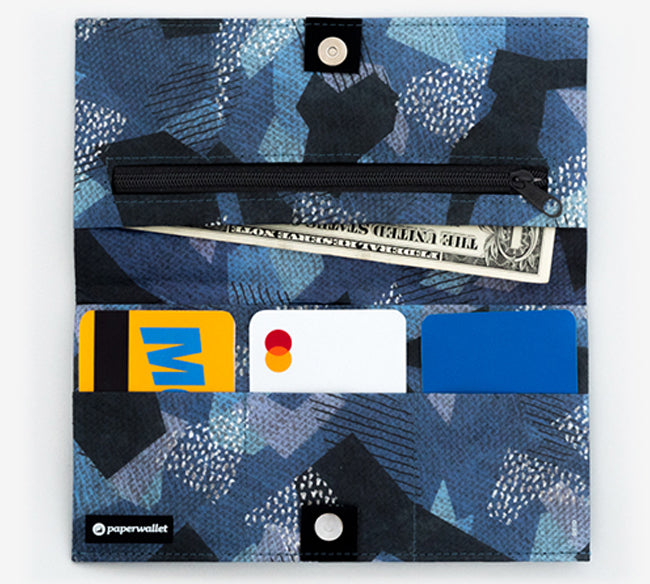 paperwallets are crafted from Tyvek®, a durable, lightweight, waterproof material designed to match your active lifestyle. This synthetic material is constructed from high-density, recyclable polyethylene fibers.