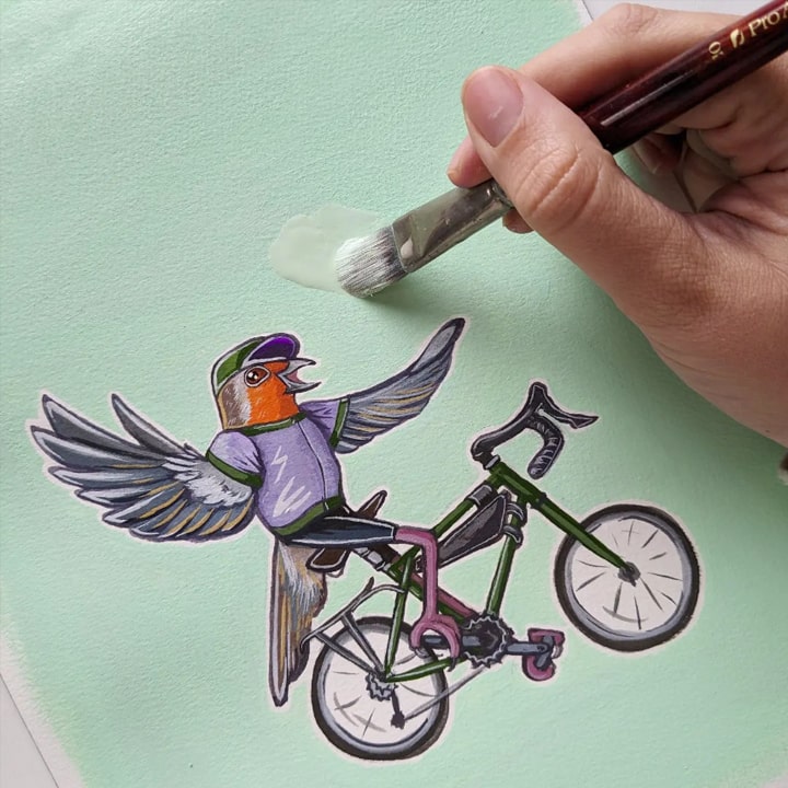 A globe-trotting illustrator, specializes in whimsical drawings of birds donning hats. She continues to find new, more exciting ways to put birds in hats.