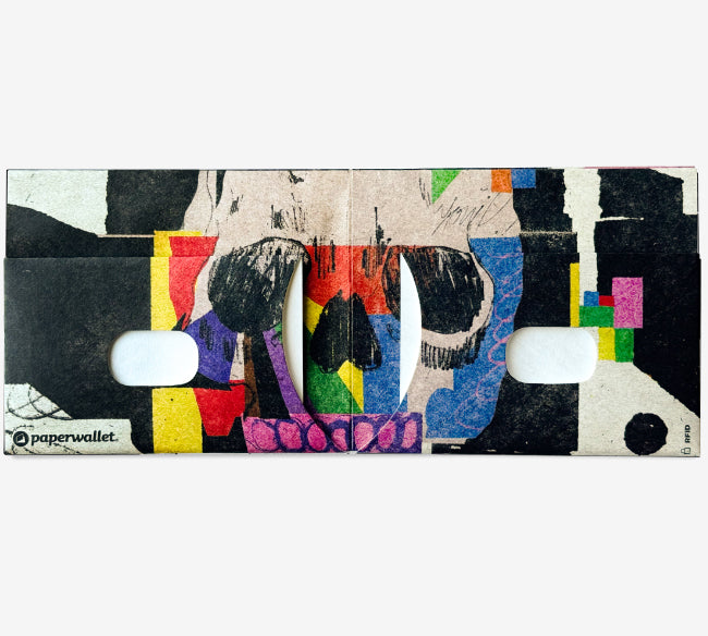The Slim Wallet, made from durable Tyvek®, organizes your life with a sleek design. Waterproof and tear-proof, it comfortably holds 12-16 cards and cash. Unique artist-designed paperwallets add individuality.
