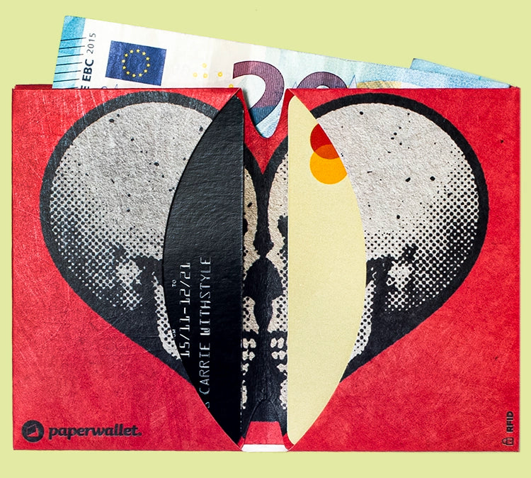 paperwallets are crafted from Tyvek®, a durable, lightweight, waterproof material designed to match your active lifestyle. This synthetic material is constructed from high-density, recyclable polyethylene fibers.