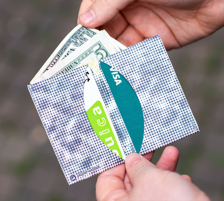 paperwallets are crafted from Tyvek®, a durable, lightweight, waterproof material designed to match your active lifestyle. This synthetic material is constructed from high-density, recyclable polyethylene fibers.