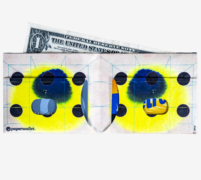 The Slim Wallet, made from durable Tyvek®, organizes your life with a sleek design. Waterproof and tear-proof, it comfortably holds 12-16 cards and cash. Unique artist-designed paperwallets add individuality.