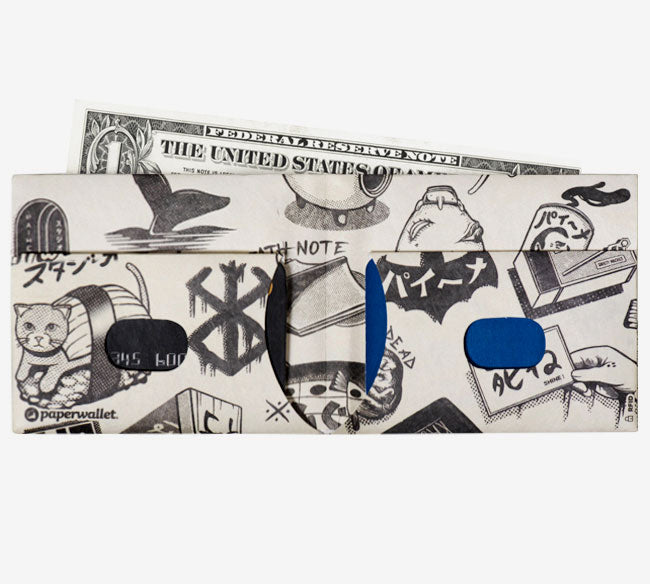 The Slim Wallet, made from durable Tyvek®, organizes your life with a sleek design. Waterproof and tear-proof, it comfortably holds 12-16 cards and cash. Unique artist-designed paperwallets add individuality.