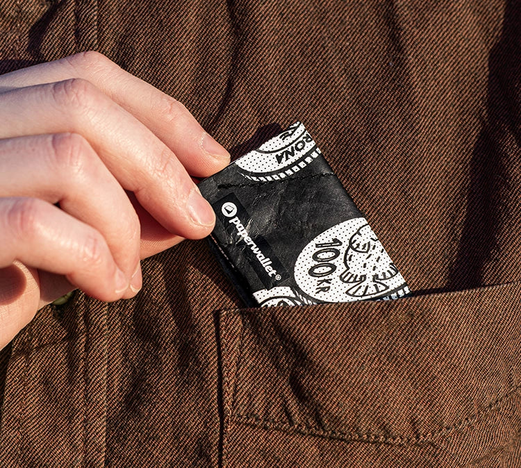 paperwallets are crafted from Tyvek®, a durable, lightweight, waterproof material designed to match your active lifestyle. This synthetic material is constructed from high-density, recyclable polyethylene fibers.
