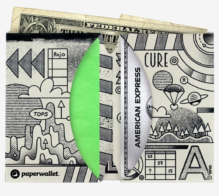 Our Micro Wallet is ultra-slim, durable, waterproof, and made from a single piece of Tyvek®. It holds up to 8 cards and cash, blocks RFID, and folds to the size of a card. Choose from limited-edition artist designs that match your style.
