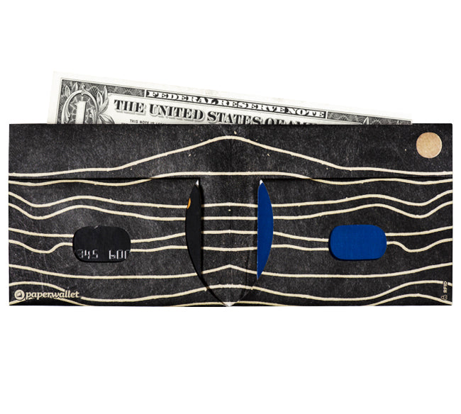 paperwallets are crafted from Tyvek®, a durable, lightweight, waterproof material designed to match your active lifestyle. This synthetic material is constructed from high-density, recyclable polyethylene fibers.