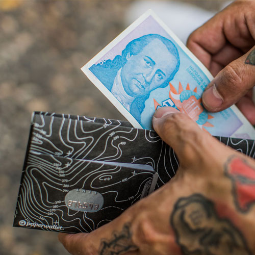 paperwallets are crafted from Tyvek®, a durable, lightweight, waterproof material designed to match your active lifestyle. This synthetic material is constructed from high-density, recyclable polyethylene fibers.